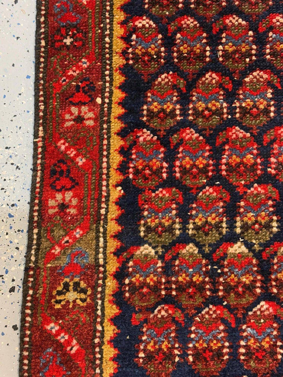 Long Narrow Red and Navy Geometric Rug - Bold Patterned Kurdish Runner for Hallway - 2.2x19 ft