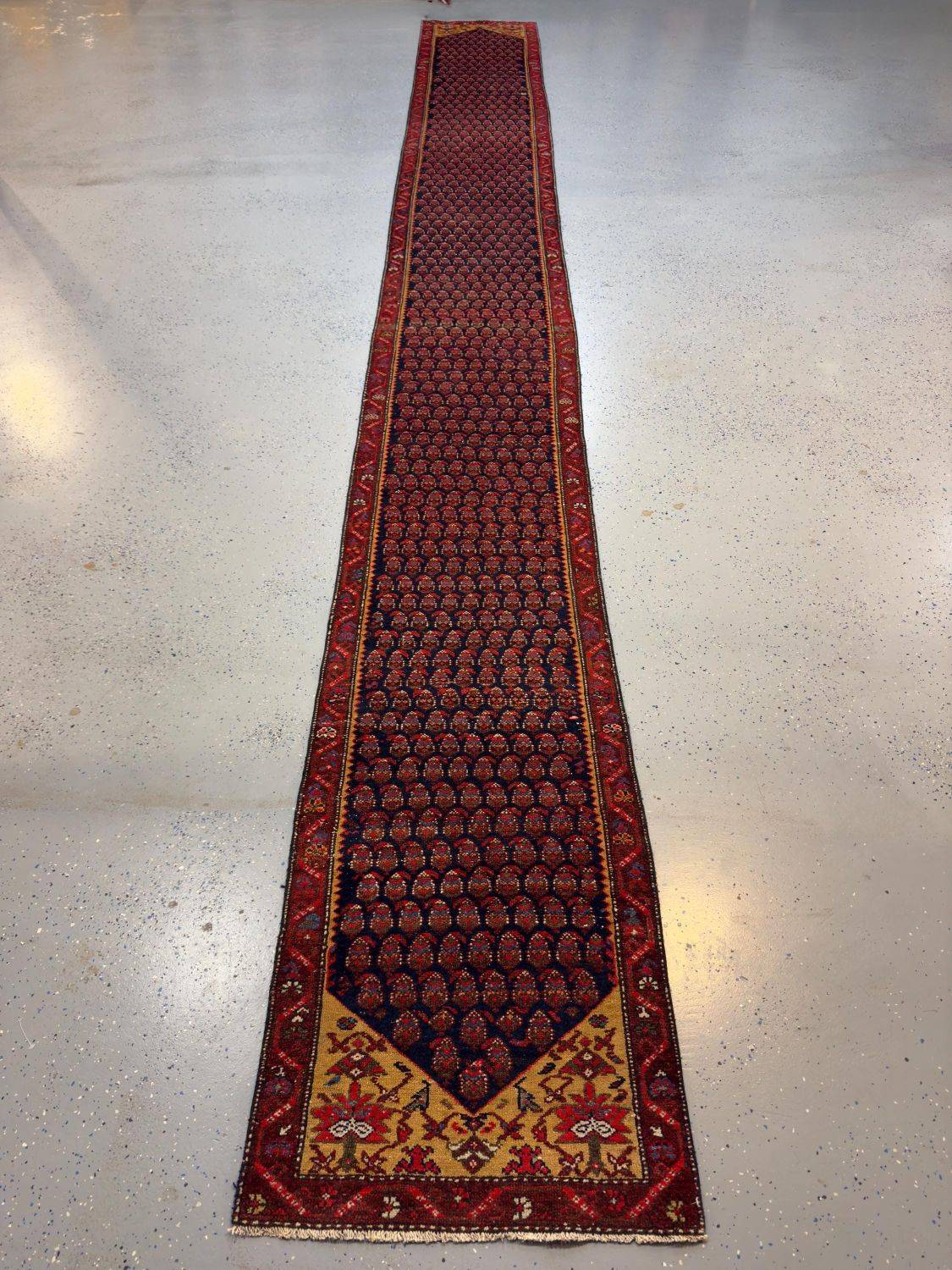 This exquisite handwoven Persian runner rug is a masterpiece of traditional craftsmanship, embodying the rich cultural heritage of Persian artistry. Crafted from 100% natural wool, it is soft, durable, and eco-friendly, reflecting a centuries-old weaving tradition passed down through generations of skilled artisans.