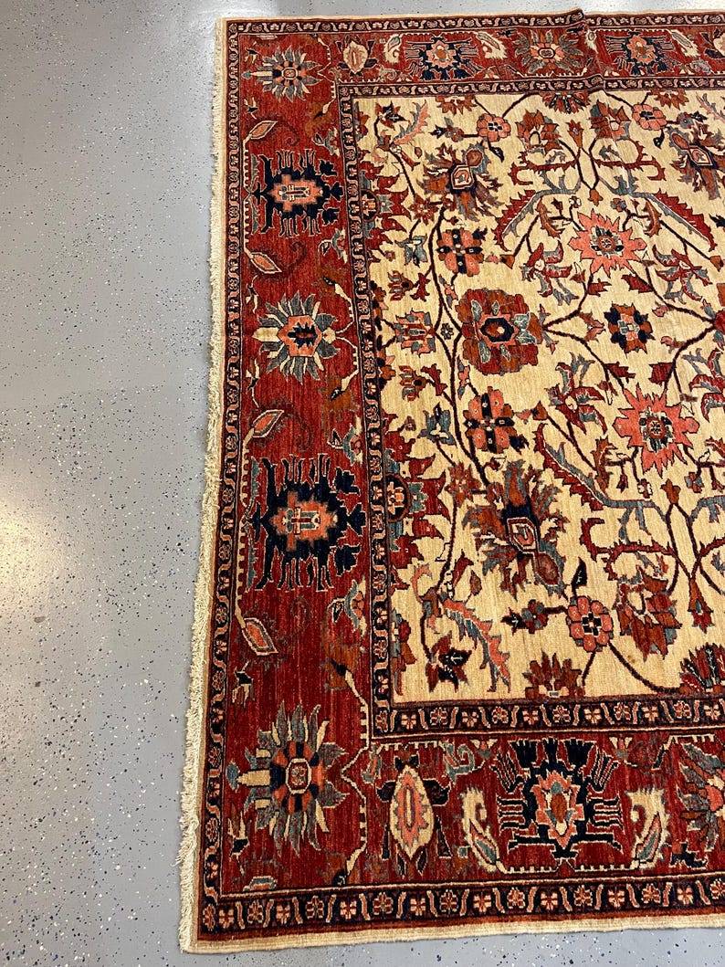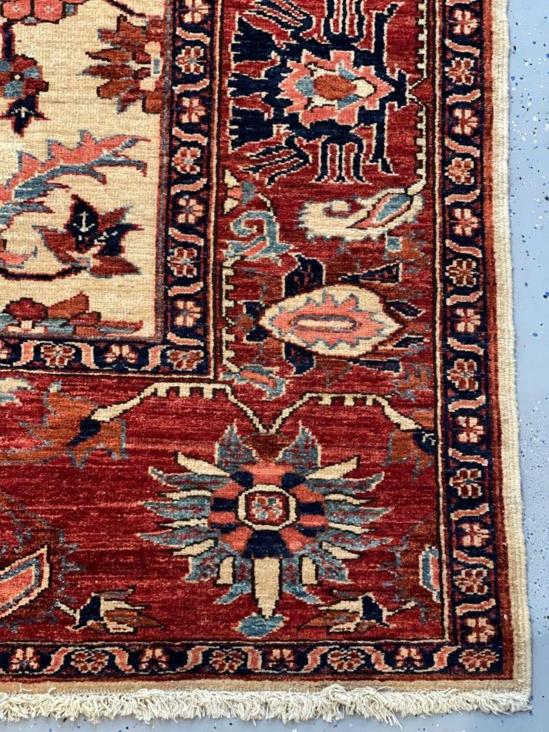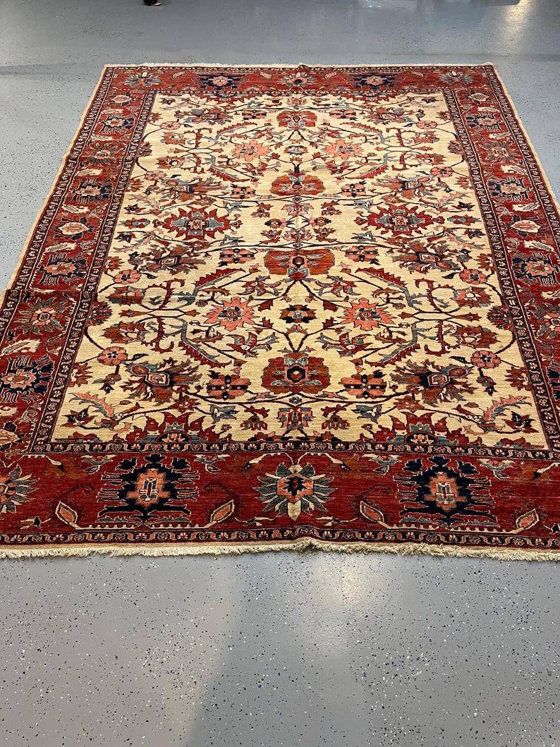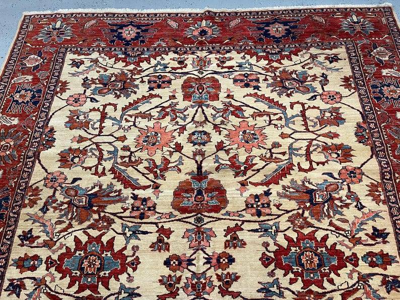 Step into the world of vintage elegance with our Fantastic Turkish Heriz rug, measuring a generous 6.1 x 8.9 feet. This rare find hails from the 1930s to 1940s, showcasing the exquisite craftsmanship that has made Heriz rugs a sought-after addition to any home. With its intricate patterns and vibrant colors, this carpet is not just a floor covering but a piece of art that tells a story. What sets this Heriz rug apart is its unique design, characterized by bold geometric shapes and rich hues that have stood the test of time. The combination of deep reds, blues, and earthy tones creates a stunning visual impact, making it a perfect statement piece for both modern and traditional interiors. Plus, the durable wool construction ensures that this beauty will remain a cherished part of your home for years to come. Perfect for living rooms, dining areas, or cozy nooks, this rug adds warmth and character to any space. Imagine it underfoot as you host friends and family, or as the centerpiece of your favorite reading corner. Its versatility means you can style it in countless ways, making it an easy fit for your decor. Don’t miss out on the chance to own this exceptional piece of history! Whether you’re a collector or just looking to elevate your home’s aesthetic, this Turkish Heriz rug is a fantastic choice. Grab it while you can—rare gems like this don’t come around every day!