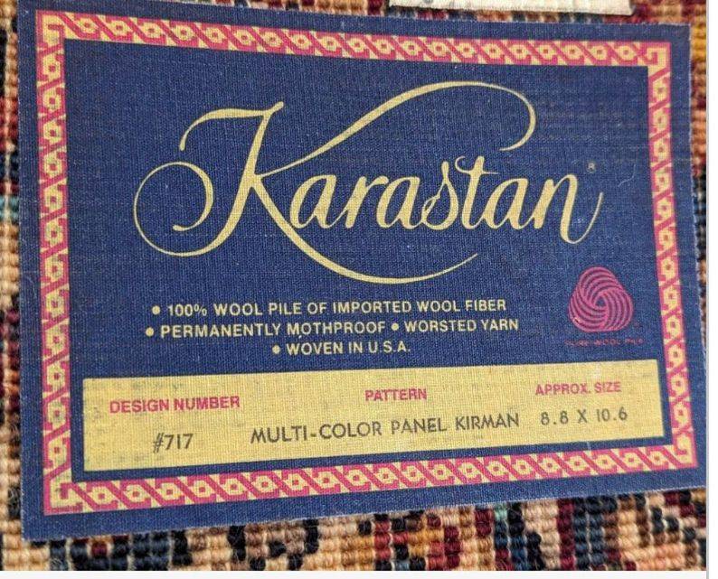 Vintage Karastan 717 Multicolor Rug | Panel Kirman Persian Design | 8.8x10.6 ft | Wool Area Rug | Classic Oriental Home Decor
